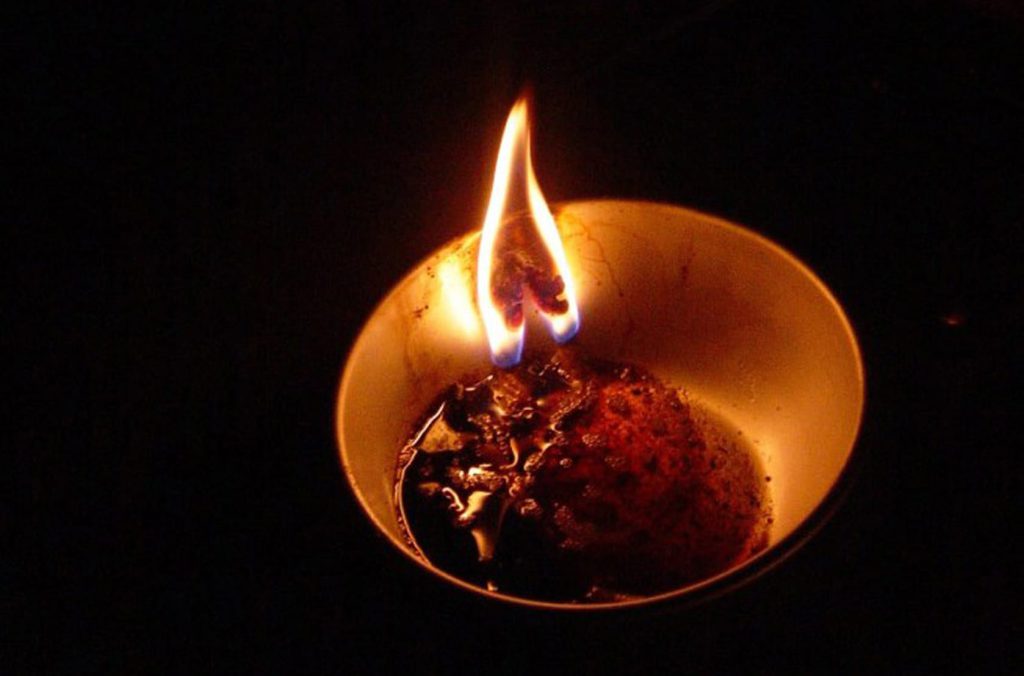 植物、オブジェ、鏡、豚の油の炎、これらを使ってガマの空間全体を演出する一つのインスタレーション作品です。 ガマ内には、人の形をしたオブジェがいくつも置かれます。 訪れる人々は、このオブジェたちに直接触れたり、座ったり、横たわったりすることによって、過去から現在、そして未来まで、ガマの内部で起こったこと、 人間の生活を、時の波動として感じます。オブジェが媒介となり、人間の生命と潜在的な対話をすることが出来るのです。それは見る側によって、快適さを感じ る場合もあり、恐怖を感じることもあるでしょう。 オブジェ自体は、フクギの葉で黄色く染められ、中には新聞紙が詰められています。 新聞は、人間の歴史を語る社会の日記のようなものだと考えられるからです。 そして、サトウキビや沖縄に自生する草花も設置されます。それらは、生き物としての使命に則り、インスタレーションの一部でありながらも、会期中に様々に変化していくことでしょう。 豚の油の炎によってできるガマ内の壁 や床に映る影は、私たちの人生が光と影によって成り立っていることを教えてくれるはずです。光を放つ輝かしい部分とそれに付き添って離れない影の部分。そ れは表裏一体のものであり、相互に関連し合う一ユニットなのです。また大きな視点で見れば、一対になった光の部分と影の部分、これは過去に人間がくぐり抜 けて来た歴史自体にも言えることだと思います。 また、鏡がガマの中のあらゆる所に置かれることにより、そこに新たな場所が投影されます。現実の世界と逆転した全く新たな世界、それは見る者に人間のうちなる宇宙と外なる宇宙を感じさせることのできる聖なるメディアの役割を果たすのです。 鏡が「影見(かげみ)の転」と呼ばれ、古来日本では霊的な物や神社の神体とされ、魔よけとして用いられて来たように、それをのぞく人々の心の中に過去の記憶を蘇らせ、現在に映し出すことでしょう。